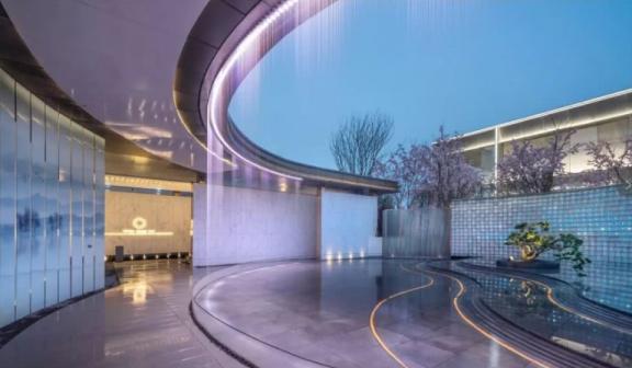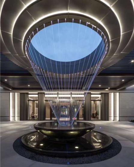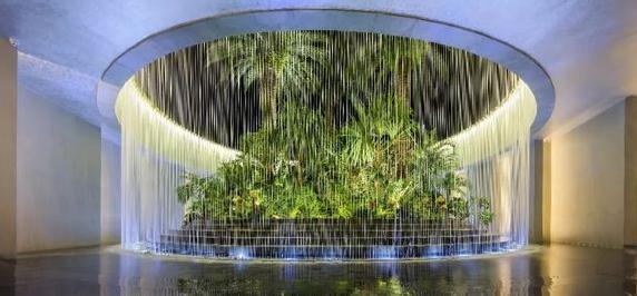 在现代景观中,它也能为空间制造一丝朦胧浪漫的气氛。水帘相对柔和安静,又充分呈现着水的动态灵气。就像“雨”的提取与重组,能带来愉悦灵动的空间体验。