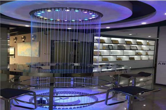拉线水帘主要是通过水底灯光的照射向拉线投射七彩光亮;而光纤水帘则是通过光纤线体自身发出七彩灯光;